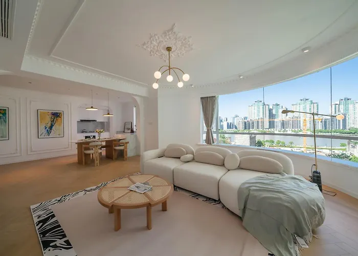 Die Ferienwohnung Eastern Hub - Bund Branch Simply Luxurious 4 King Beds, Big French Windows with Bund Views Shanghai befindet sich im Bezirk Huangpu von Shanghai, einen 5-minütigen Spaziergang von der U-Bahn-Station Xiaonanmen entfernt. Das Apartment bietet den Gästen einen entspannenden Aufenthalt mit einer Sauna.